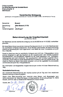 Bekanntmachung der Unanfechtbarkeit