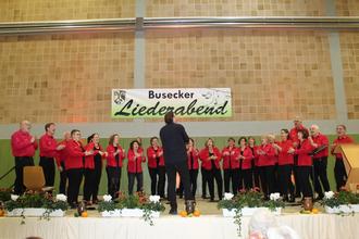 Die Sängervereinigung „Eintracht-Germania Großen-Buseck“ trat gemeinsam sowie als reiner Frauenchor (Fröhlich klingen unsere Lieder) und Männerchor (Bring mir doch den Rotwein her) auf. Mit „Que sera sera“ in der deutschen Fassung „Was kann schöner sein“ animierten sie zum Schunkeln. Es war der erste öffentliche Auftritt unter Dirigat von Patrick Henkel, der die „Feuertaufe“ bestens bestanden hat.