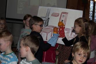 Das Kinder-Sing-Projekt „Hänsel und Gretel“ fand mit der Aufführung am vergangenen Sonntag in der bestens besuchten evangelischen Kirche Großen-Buseck einen erfolgreichen Abschluss. Unter der musikalischen Leitung von Schulpfarrer Norbert Heide hatten 20 Kinder im Alter ab fünf Jahren seit Anfang September darauf hingearbeitet. Eine Stunde wurde gesungen, getanzt, gelacht und vor selbst gemalten Bildern mit Handpuppen kleine Szenen aus dem Märchen der Gebrüder Grimm nachgestellt. Zu verfolgen war dies auch über eine Leinwand. Die Zusammenstellung der Lieder war angelehnt an Humperdincks Kinderoper „Hänsel und Gretel“. „In vereinfachter Form und für die Mitgestaltung von Gottesdiensten mit religiösem Liedgut erweitert,“ erläuterte Heide.