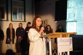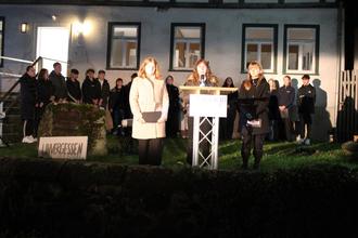 An die ehemalige Synagoge am „Anger 10“ hatte der gleichnamige Verein zur alljährlichen Gedenkveranstaltung anlässlich der Reichspogromnacht eingeladen. Anfang der 80-er Jahre hat die SPD den Grundstein zu dieser Tradition gelegt. Seit einigen Jahren sind Schüler des jeweils zehnten Jahrgangs der IGS Busecker Tal wesentlich an der Ausgestaltung beteiligt. Mit der angemessenen Ernsthaftigkeit verlasen sie die Namen der jüdischen Opfer des Nazi-Regimes, während die entsprechenden Stolpersteine oder Fotos der Opfer eingeblendet wurden. Für die 140 Besucher war dies berührend und bedrückend zugleich.