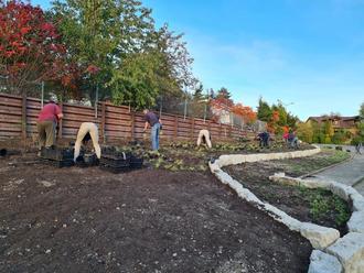 Arbeitseinsatz 3: Pflanzung der Gehölze und Stauen oberhalb der Trockenmauer