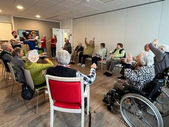 Unsere Gäste zeigten sich sichtlich erfreut und überrascht. Mit viel Schwung wurde gemeinsam zu dem Lied „Wir haben oben gute Laune“ getanzt, und dank zweier aktiver Karnevalistinnen in unserem Team durften wir uns auch über eine erste Büttenrede freuen.