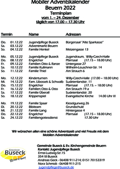 Einladung zum Mobilen Adventskalender in Beuern 2022