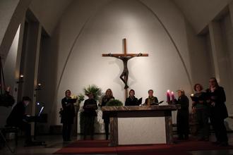 Von getragener Schönheit gestalteten sich die Gesangsbeiträge der Schola unter der Leitung von Renate Schygulla. „Maria durch ein Dornwald ging“ - dieses alte Wallfahrtslied aus Eichsfeld/Thüringen - durfte auch bei diesem Adventskonzert nicht fehlen. Beim Lied vom Friedenslicht wanderten unwillkürlich die Gedanken dorthin, wo Krieg und Unfrieden herrschen.