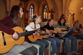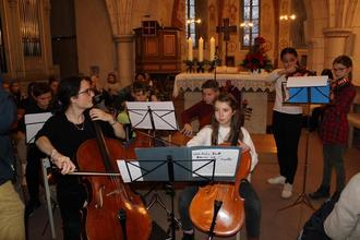 Während des Weihnachtsmarktes in Großen-Buseck, Alteingesessener sprechen vom „Busecker Samstag“, ist es Tradition, dass zunächst die evangelische Kirchengemeinde zu einem adventlichen Programm und im Anschluss daran die Musikschule an der IGS Busecker Tal zu einem Konzert in das Gotteshaus einladen. Wo viele Kinder auftreten, da sind Eltern und Angehörige nicht weit. Gerade für die Fünftklässler, die erst seit acht Wochen Unterricht erhalten, ist das Interesse der Familien für die Motivation enorm wichtig. Damit das Lampenfieber nicht unnötig steigt, bleibt jeweils der Konzertauftakt den jüngsten Instrumentalisten vorbehalten.