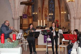 Ein Bläserquartett mit Musikschulleiterin Britta Lange (Horn), Andrea Eckwert Euphonium), Burkhard Mayer (Trompete) und IGS-Lehrerin Katja Schäfer an der Posaune rundete das kurzweilige Konzert mit der ursprünglich aus England stammenden und mittlerweile in nahezu der ganzen Welt beliebten Melodie von „Away in an manger“ klangvoll ab.