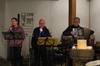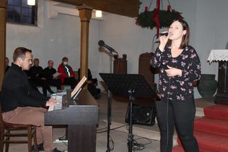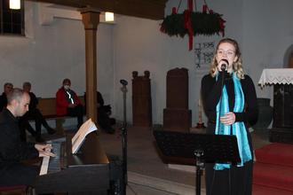 Zu dem von Niklas Henkel moderierten abwechslungsreichen Konzert trugen Thomas und Annika Diehl (Orgel, E-Piano und Gesang), der Christmas-Song als Solo von Verena Schmitz vorgetragen (Piano-Begleitung Henrik Stolte) und Chorsänger Steffen Albach bei. Er spielte bekannte Weihnachtslieder auf der Trompete. Da lag kein Ton daneben. Dieses gilt ebenso für den hervorragenden Auftritt von Klaus-Jürgen Grün (Tenor), Ilona Zacharski (Mezzosopran) und Hartmut Zacharski (Akkordeon). Ihre Darbietungen wie etwa das französische Weihnachtslied „Petit Papa Noel“ und das 1967 von Robert Stolz komponierte Christrosenlied erhielten großen Beifall. „Wer die Augen schließt und die Musik genießt, wird das unter der Kirchendecke gespannte Schutzgitter vergessen“, hatte Pfarrer Stefan Becker anfangs prophezeit. So war es!