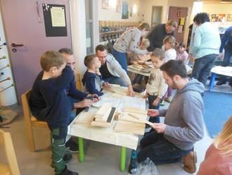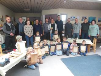 Das Material wurde vom Natur- und Vogelschutzverein vorbereitet und kostenlos zur Verfügung gestellt. Alle Kinder durften ihren selbstgebauten und zusätzlich noch einen fertigen Nistkasten für kleine Fledermäuse mit nach Hause nehmen.