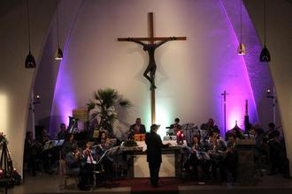 Kapellmeister Andreas Heil konnte bei nahezu allen Stücken auf Solisten zurückgreifen. Neben Informationen zu den einzelnen Werken stellten Birgit Galonska und Thomas Reitz den Bezug zum Konzerttitel „Liebe & Hoffnung“ her. Die Besucher zeigten ihre Begeisterung nach den letzten Darbietungen, dem Klassiker „White Christmas“ und der Zugabe „Highland Cathedral“, mit Ovationen.