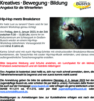 Kreatives • Bewegung • Bildung Angebot für die Winterferien