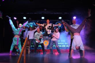 Die FireBeazz brachten den Saal so richtig zum Kochen. Zunächst führten sie mit „Hey Wicky“ und dem Gummibären-Song in die Kinderzeit zurück, um danach mit Puffmama Layla so richtig aufzudrehen. Da hielt es niemand mehr auf den Plätzen, lautstark wurde Hulapalu gefordert. „Hodiodio“ stimmte Marcel Fischer an und bot dabei nicht wie sonst in Lederhosen, sondern im Entenkostüm einen köstlichen Anblick.