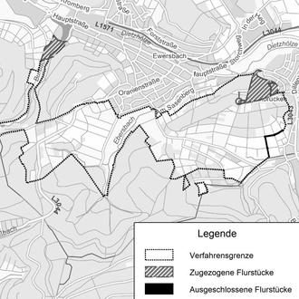 Das Flurbereinigungsgebiet hat unter Berücksichtigung der unter Nummer 1 genannten Änderungen eine Gesamtfläche von rund 214 ha. Damit vergrößert sich das Flurbereinigungsgebiet um rund 10 ha. Die mit diesem Änderungsbeschluss zum Flurbereinigungsgebiet zugezogenen Grundstücke sind: