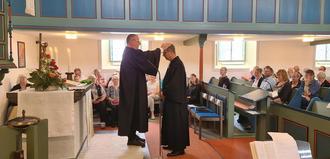 Zuvor hatte Dekan Andreas Friedrich Henning Briesemeister von seinen Dienstpflichten entbunden. Nur wenige Pfarrer gingen ein zweites Mal in den Ruhestand, machte der Dekan bewusst und erinnerte daran, dass Briesemeister als Vorruheständler einer benachbarten Landeskirche 2019 in der Vakanz der Kirchengemeinde wieder mit einer halben Stelle eingestiegen sei - eine Personalie, die seines Wissens in der ganzen Evangelischen Kirche in Deutschland bis dahin nicht vorgekommen sei. Für die Gemeinde und den Nachbarschaftsraum sei Briesemeister ein „Geschenk Gottes“ und ein „Hoffnungsträger“ gewesen, lobte der Dekan und stattete den künftigen Pensionär mit den Zweit- und Drittnamen Dorothea und Tumaini aus, die eben dies bedeuten.
