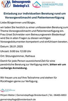 Beratung rund um Vorsorgevollmacht und Patientenverfügung