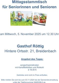 Mittagsstammtisch für Seniorinnen und Senioren