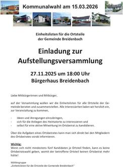 Vorheriger Artikel: Kommunalwahl 2026 - Bürgerinformation