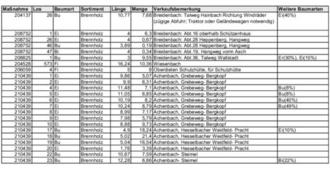 | - | die jeweiligen Maßnahmen- und Losnummern am Holz zu beachten sind, um Verwechslungen vorzubeugen. |