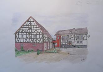 Manfred Schmidt zeichnet Oberdietener Fachwerkhäuser