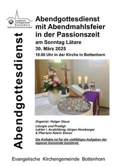 | Die Abendgebetsreihe in der Passionszeit. Wie jedes Jahr donnerstags in der Ev. Kirche in Bottenhorn. |