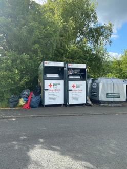 Wir bitten bei Überfüllung von Kleidercontainern keine Säcke neben die Container zu stellen. Bitte weichen Sie auf andere Standorte, beispielsweise beim Einkaufszentrum in Bad Endbach aus. Das Foto zeigt die Container in Hartenrod, Neuer Weg. Das DRK ist bemüht die Container baldmöglichst leeren zu lassen.