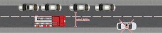 Der Abstand zwischen versetzt parkenden Fahrzeugen muss so groß sein, dass ein LKW ungehindert hindurchfahren kann. 10 Meter Abstand zwischen den Fahrzeugen sind ein guter Richtwert. Bedenken Sie: LKW müssen zum Durchfahren der Kurven zur Außenseite hin ausholen. Das braucht Platz.