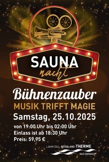 Das Team der Lahn-Dill-Bergland-Therme lädt am Samstag, den 25. Oktober 2025, zu einer spektakulären Nacht der Sinne ein: Die lange Saunanacht „Bühnenzauber – Musik trifft Magie“ entführt Besucher von 19:00 bis 02:00 Uhr in die magische Welt der Musicals und exquisiten Saunaaufgüsse.
