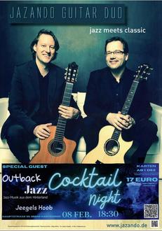 | 18:30 Uhr | Jazz Concert & Cocktail mit dem JAZANDO GUITAR DUO und mit OUTBACK JAZZ im Jeegels Hoob. Eintritt: 17,- €. |