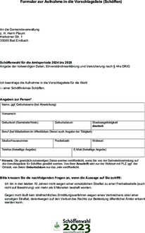 Schöffenwahl - Formular zur Aufnahme in die Vorschlagsliste