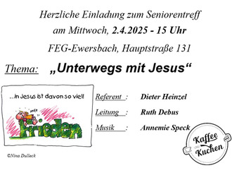 | 15.00 Uhr | Seniorenkreis (1. Mittwoch im Monat) |