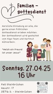 | 16:00 Uhr | Familiengottesdienst am Nachmittag; Predigt: Hartmut Hühnerbein |