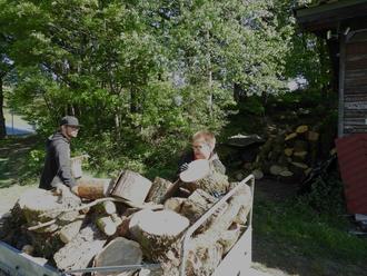 Am 10.05. traf man sich dann wieder für den zweiten Arbeitseinsatz. Primär galt es hier noch weiter die umliegenden Bäume im Bereich der Lifttrasse zu entfernen. Mit Kettensägen wurden die Bäume zerkleinert, auf Länge geschnitten und mit dem Anhänger wieder zum Lagerplatz für das Brennholz transportiert.