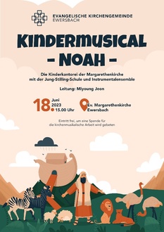 das Musical “Noah“ von Michael Schmoll(Musik), Brigitte Robers-Schmoll(Text) gesungen. Mitwirkende; Die Kinderkantorei der Margarethenkirche mit der Jung-Stilling-Schule, Instrumentalensemble