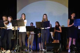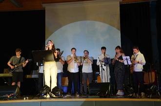 Das Eingangsstück "Ein Strauß für dich" – ein Medley bekannter Walzermelodien von Johann Strauß – dargeboten von der Bläserklassen 5-8, geleitet von Beate Czymek, bildete den gelungenen Auftakt, gefolgt von einem Grußwort der Schulleiterin Andrea Rink. Hieran schloss sich die Bandklasse 5 unter der Leitung von Dennis Amend an, mit den Stücken peppigen Titeln "Keine Ahnung" der Unicorn Kids, "LMK" von Lil XXEL und "Price Tag" von Jessie J.. Weiter ging es mit der Band/Bläserklasse 5 und den populären Titeln "Lemon Tree" der Gruppe Fools Garden und "Perfect" von Ed Sheeran. Als nächstes ging die Bandklasse 6 unter Patrick Zapf auf die Bühne. Zu hören waren der dramatische "Sonnenaufgang" aus: "Also sprach Zarathustra" von Richard Strauss, "Love is all around von Wet Wet Wet und "Lieder" von Adel Tawil. Die Bläserklasse 6 überzeugte mit den bekannten Stücken "My Heart will Go on" und "Tango Negro", gefolgt von Steffen Runzheimers Bandklasse 7/8 mit den Liedern „Hinterm Horizont“ von Udo Lindenberg und "Frieden“ von Abanibi. Es folgten "Harry Potter Waltz" und "Beach Boys on Stage" - ein Medley bekannter Songs der Beach Boys – vorgetragen von der Bläserklasse 7/8, unter Beate Czymek. Den krönenden Abschluss bildete die Bigband der 9. Klasse, unter der Leitung von Beate Czymek und Steffen Runzheimer mit "House of the rising sun".