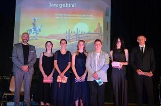 Bevor die fünf Klassen ihre Zeugnisse durch die Klassenlehrer und Klassenlehrerinnen überreicht bekamen, wurden die Klassenbesten geehrt. Im Hauptschulzweig waren dies Tim Karle und Paula Rosenberger, im Realschulzweig Ida Bastian (10R2), Mia Jäckel (10R1) und Anna Zauder (10R3) und im Gymnasialzweig Mika Körner. Der diesjährige Chemiepreis ging an Ida Bastian (10R2) und Mika Körner (10G1).