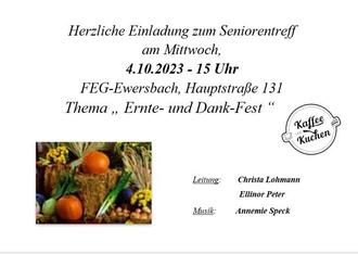 | 10.00 Uhr: | Erntedank-Gottesdienst mit Abendmahl, Predigt: Jürgen Gößl |