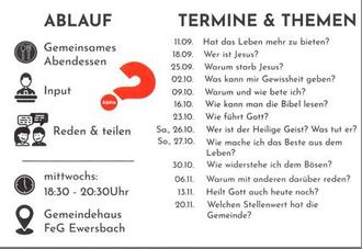 Unter der Woche finden diverse Hauskreise statt. Informationen dazu gern auf unserer Internetseite: fegewersbach.de