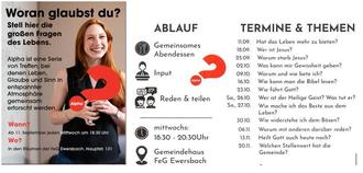 Unter der Woche finden diverse Hauskreise statt. Informationen dazu gern auf unserer Internetseite: fegewersbach.de oder bei Pastor Gößl.