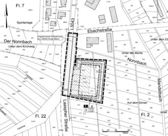 | Im Norden: | landwirtschaftliche Flächen, dahinter Gewässer „Nonnbach“ |