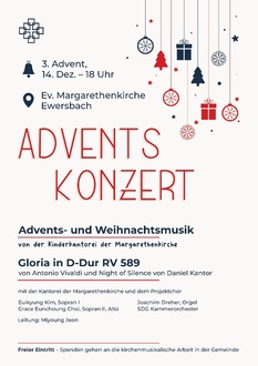 | 13.30 Uhr bis 17 Uhr | GP Adventskonzert mit Kantorei, Solisten und SDG-Kammerorchester Ev. Margarethenkirche |