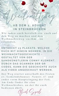 Weitere Informationen zu Hauskreisen, Ansprechpartner, Gemeindebriefen und aktuelle Predigten zum Anhören und Herunterladen gibt es unter: www.feg-steinbruecken.de
