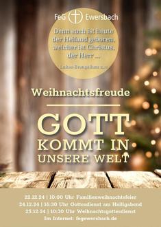 | 10.30 Uhr | Gottesdienst am 1. Weihnachten, Predigt: Jürgen Gößl |