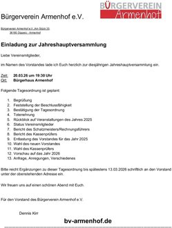 Bitte reicht Ergänzungen zu dieser Tagesordnung bis spätestens 13.03.2026 schriftlich an den Vorstand unter der obenstehenden Adresse ein.