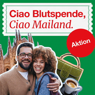 Verlosungsaktion: Blut spenden, Koffer packen und Mailand genießen. Unter allen Blutspender*innen verlost der DRK-Blutspendedienst vom 23. Februar bis 31. März 2026 drei exklusive Städtereisen für je zwei Personen nach Mailand.