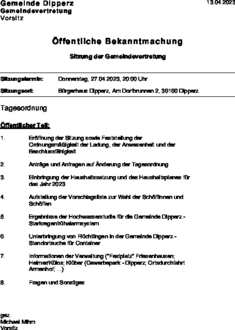 Sitzungstermin: Donnerstag, 27.04.2023, 20:00 Uhr