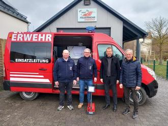 Von links nach rechts: Gemeindebrandinspektor Martin Rühl, Wehrführer der FFW Armenhof Mark Henkel, Frank Neubert, Bürgermeister Klaus-Dieter Vogler