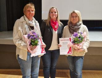 Über ihre 25jährige Mitgliedschaft konnten sich Alexandra Übelacker und Carmen Müglich freuen. Andrea Goldbach ehrte die anwesenden Frauen mit einer Urkunde und einem kleinen Blumenpräsent.