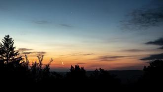 Abnehmender Mond im frühen Morgenlicht nach der Mondnacht. Foto: Jens Müller