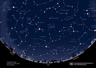 Sternenkarte für den Monat Mai 2025. Grafik: Vereinigung der Sternfreunde (VdS)