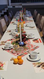 Im Namen des Vorstandes des VdK Ortsverband Dipperz begrüßte der 1. Vorsitzende Gerhard Koch Mitglieder und Gäste, darunter Bürgermeister Klaus-Dieter Vogler, zur diesjährigen Weihnachtsfeier. Liebevoll geschmückte Tischreihen und ein, von den Mitgliedern gesponsertes, wunderbares Kuchen- und Tortenbuffet luden zu gemütlichen Stunden im gut gefüllten Bürgerhaus ein. Dafür bedankte sich Gerhard Koch ausdrücklich bei allen fleißigen Helfern.