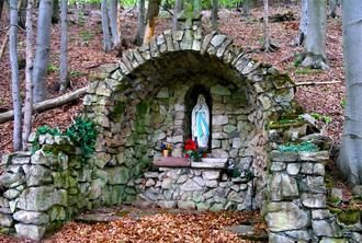Mariengrotte an einem bewaldeten Steilhang unmittelbar oberhalb der B 458 in der Gemarkung Steinwand – Foto: Bernhard Weber